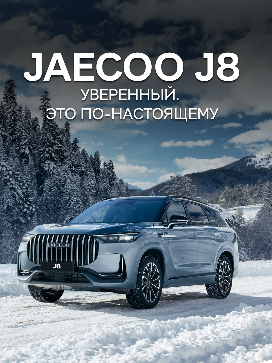 JAECOO J8 — стильный и элегантный кроссовер, который выделяется в городском потоке и уверенно чувствует себя на любом покрытии: асфальте, грунте, снегу или бездорожье. Оснащен технологией TORQUE VECTORING, которая обеспечивает точное прохождение поворотов в любых условиях.