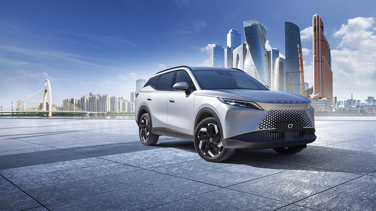 OMODA C7 сочетает элегантность купе с функциональностью кроссовера. Неповторимый образ формируют X-образная решетка радиатора, динамичный силуэт и уникальная графика ходовых огней.